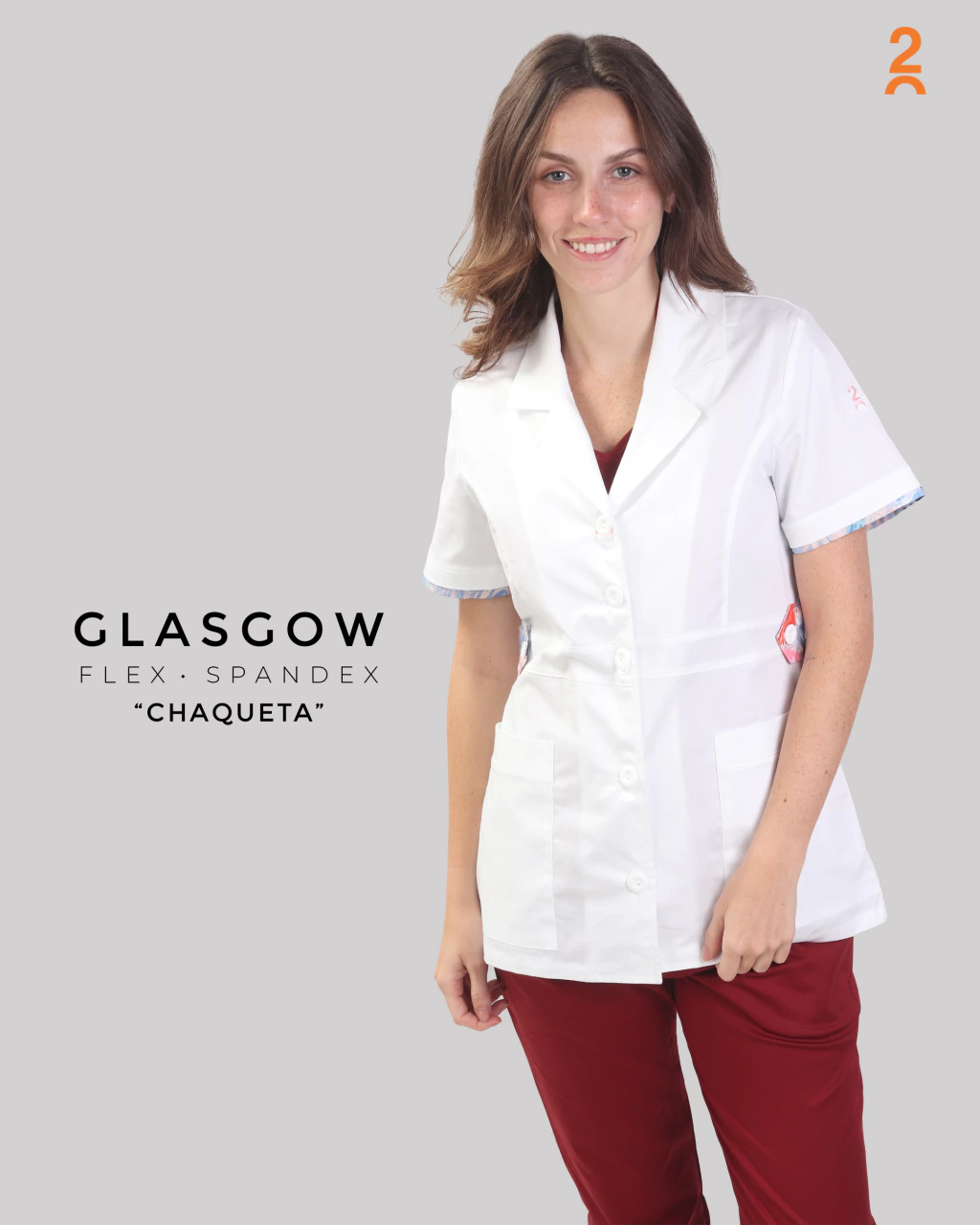 Tela flexible, liviana y comoda convinacion de tela flex mas arciel. Tener en cuenta que no es antimanchas/ anticloro/ antilavandina. Podés saber más detalles sobre el cuidado de tu ambo aquí
